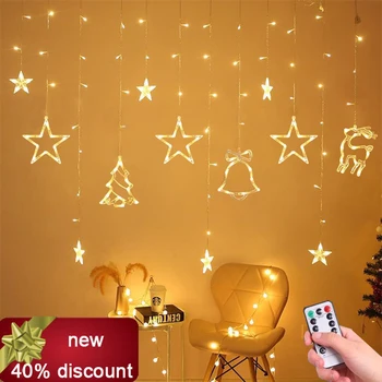Prijsvergelijkingen - 220V Eu Plug Led Star Gordijn String Licht Kerst Slingers Kerstverlichting Outdoor Voor Holiday Party Wedding Nieuwjaar decoratie Beste prijs