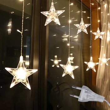 Beste prijs 2.5M Led Star Kerst Garland Gordijn Light 220V Eu Fairy String Light Outdoor Voor Party Holiday Bruiloft Nieuwe jaar Decor Beste prijs