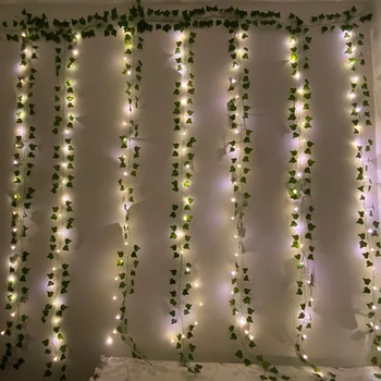 Speciale aanbiedingen Kunstmatige Klimop Bloem Rose Garland Nep Planten Vine Opknoping Garland Leaf Met 200Led String Lights Home Slaapkamer Party Muur Decor Goedkoopste