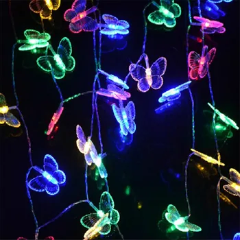 Krijg de beste prijs voor - 220V Nieuwe 5M 28 LED Vlinder Fairy String Lights kerstverlichting Wedding party room indoor/outdoor Decoratie voor thuis Guirlande Beste aanbiedingen